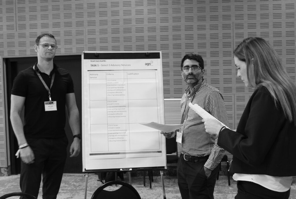 Later, during Advisory Development 2, Firm Leaders were briefed on the strategic decisions made by their NextGen counterparts earlier in the day. Using the same case study, NowGen teams tackled practical implementation challenges—finance, delivery, and change management—highlighting the value of intergenerational dialogue in shaping advisory success.